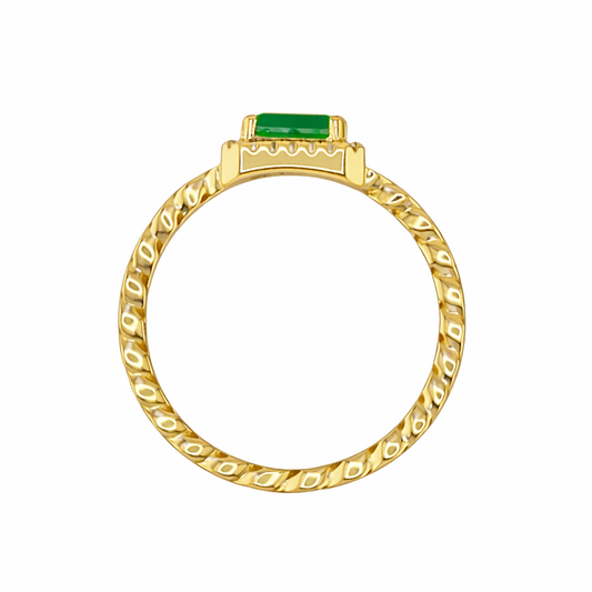 Green Emerald Cut Miami Cuban Ring